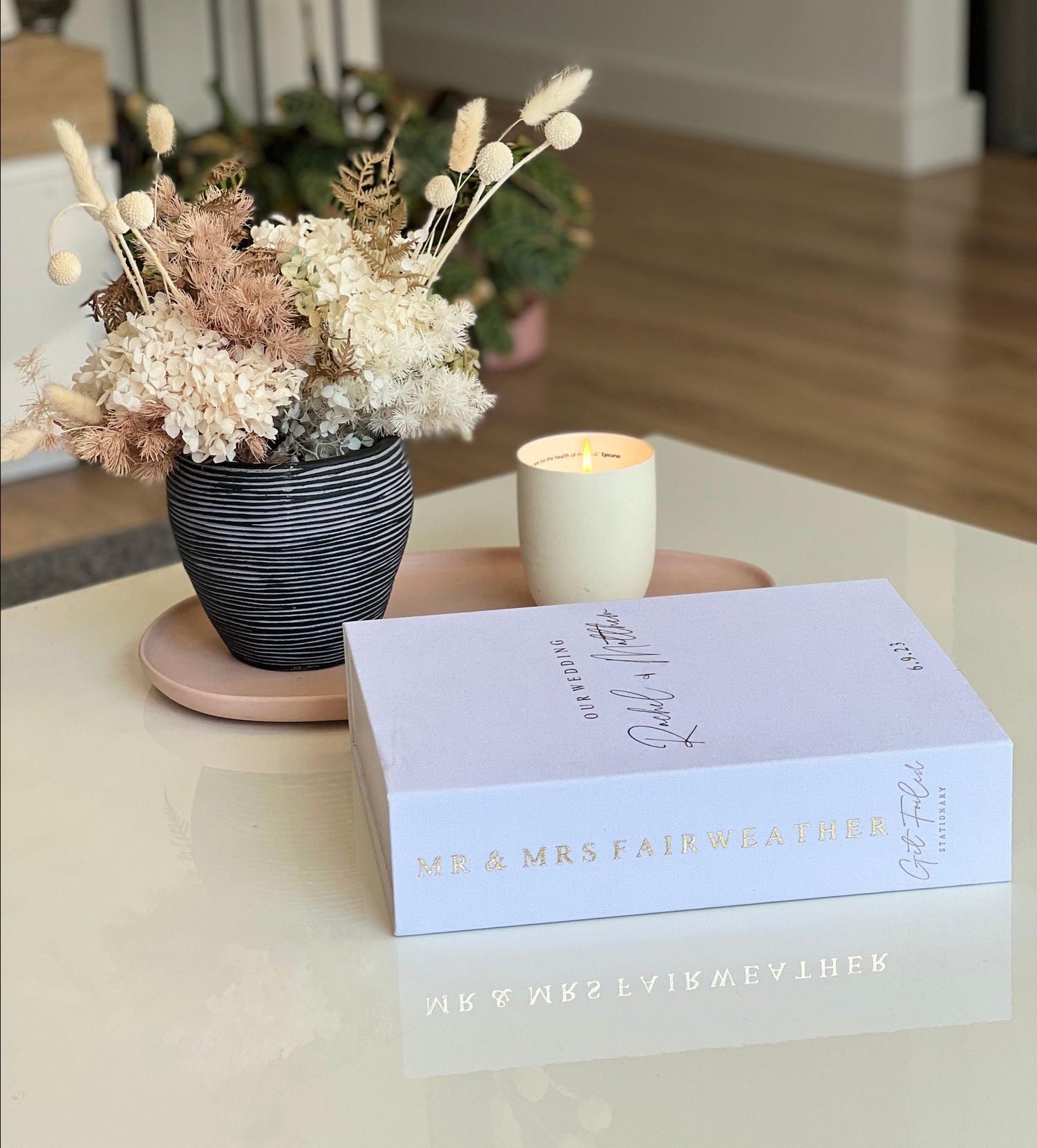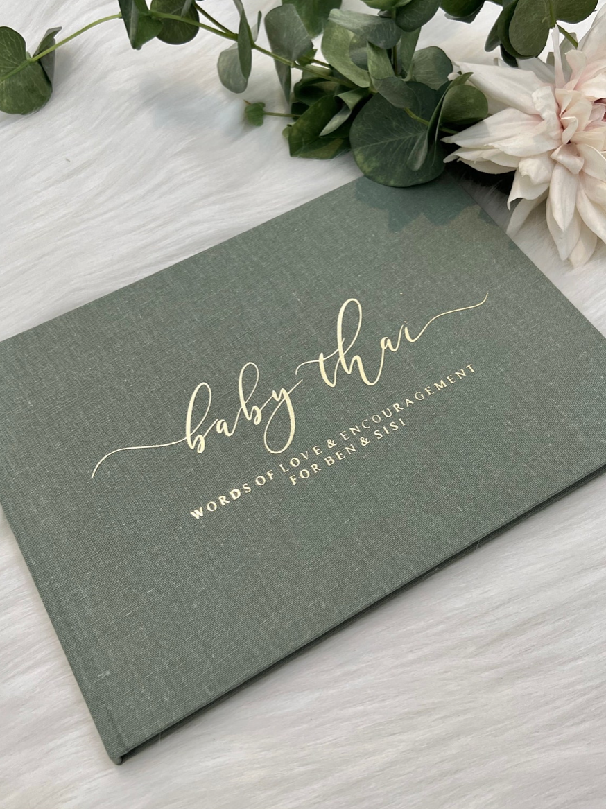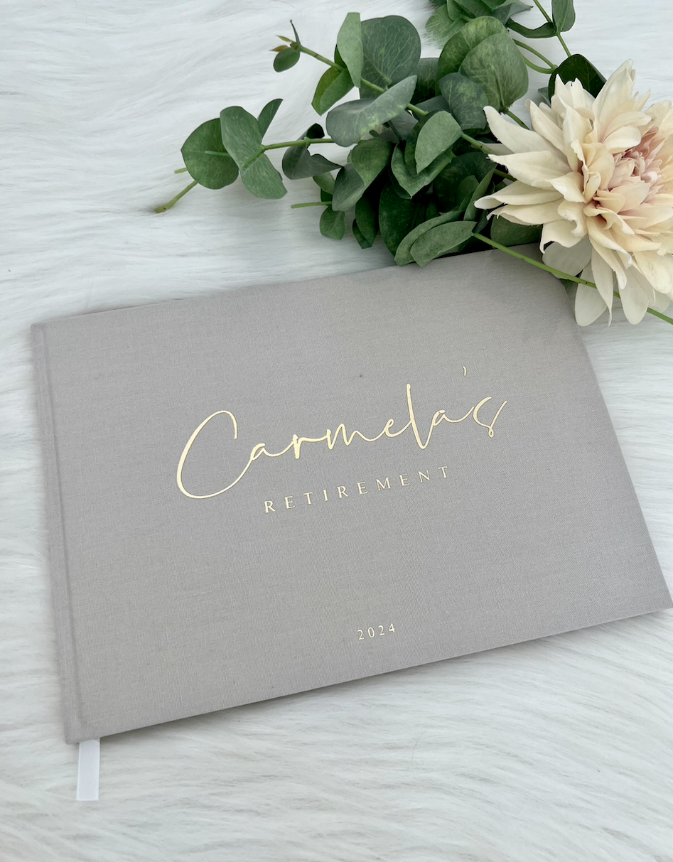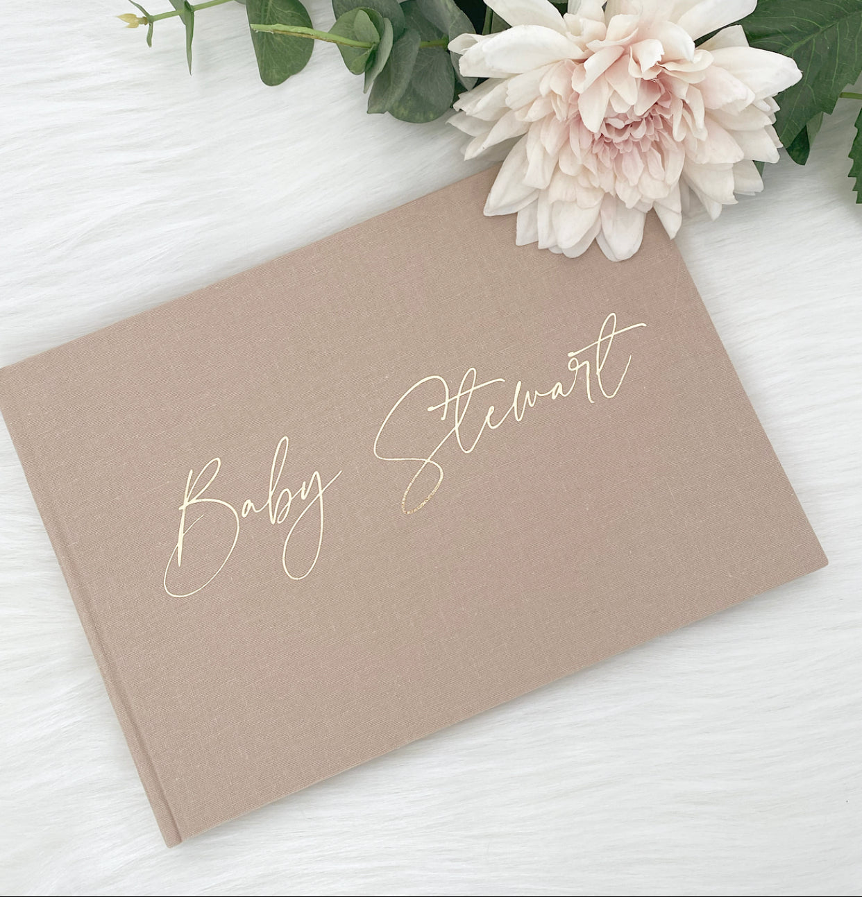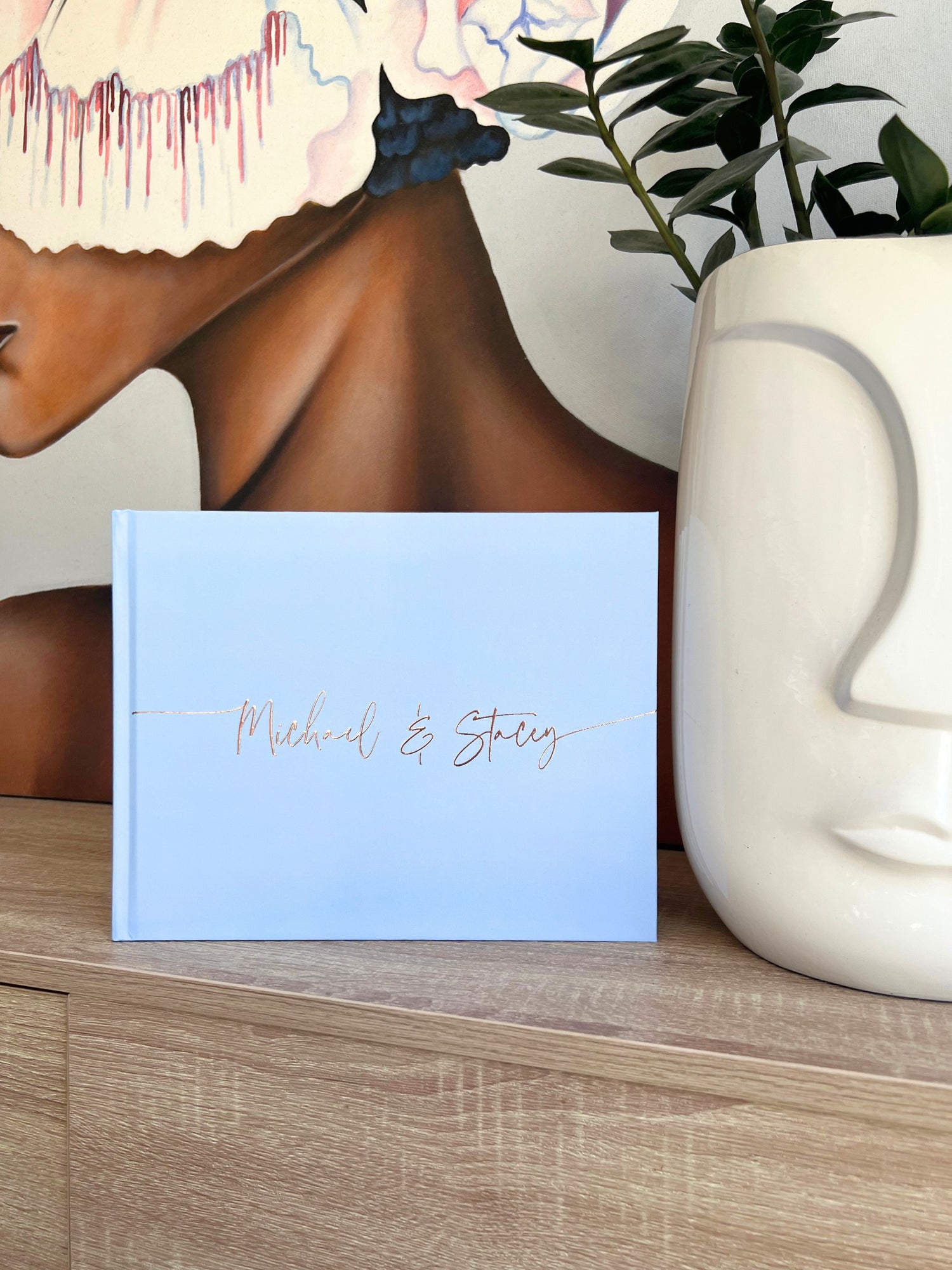 Our soft-touch hardcover wedding guest books are printed with real foil and...